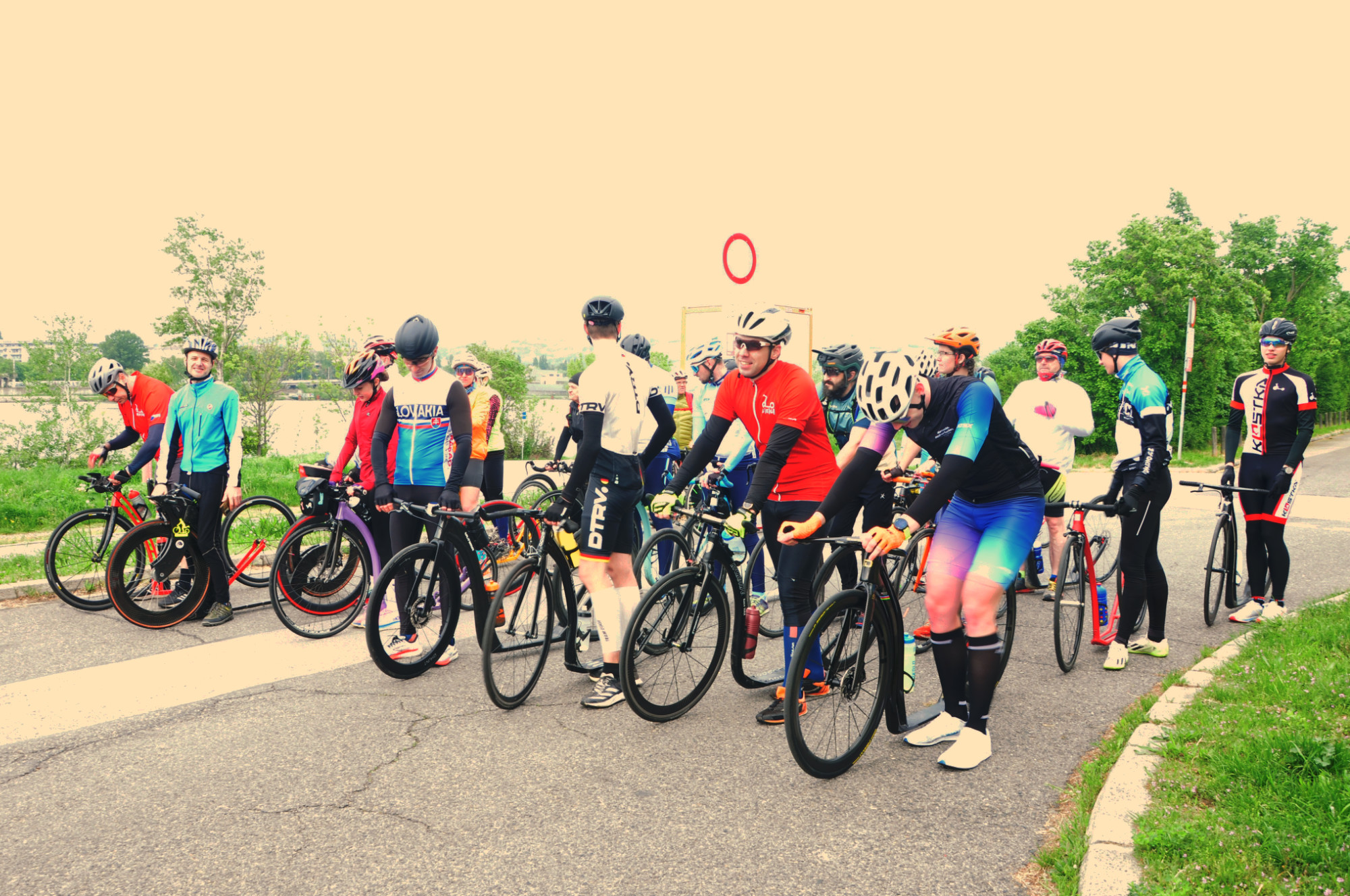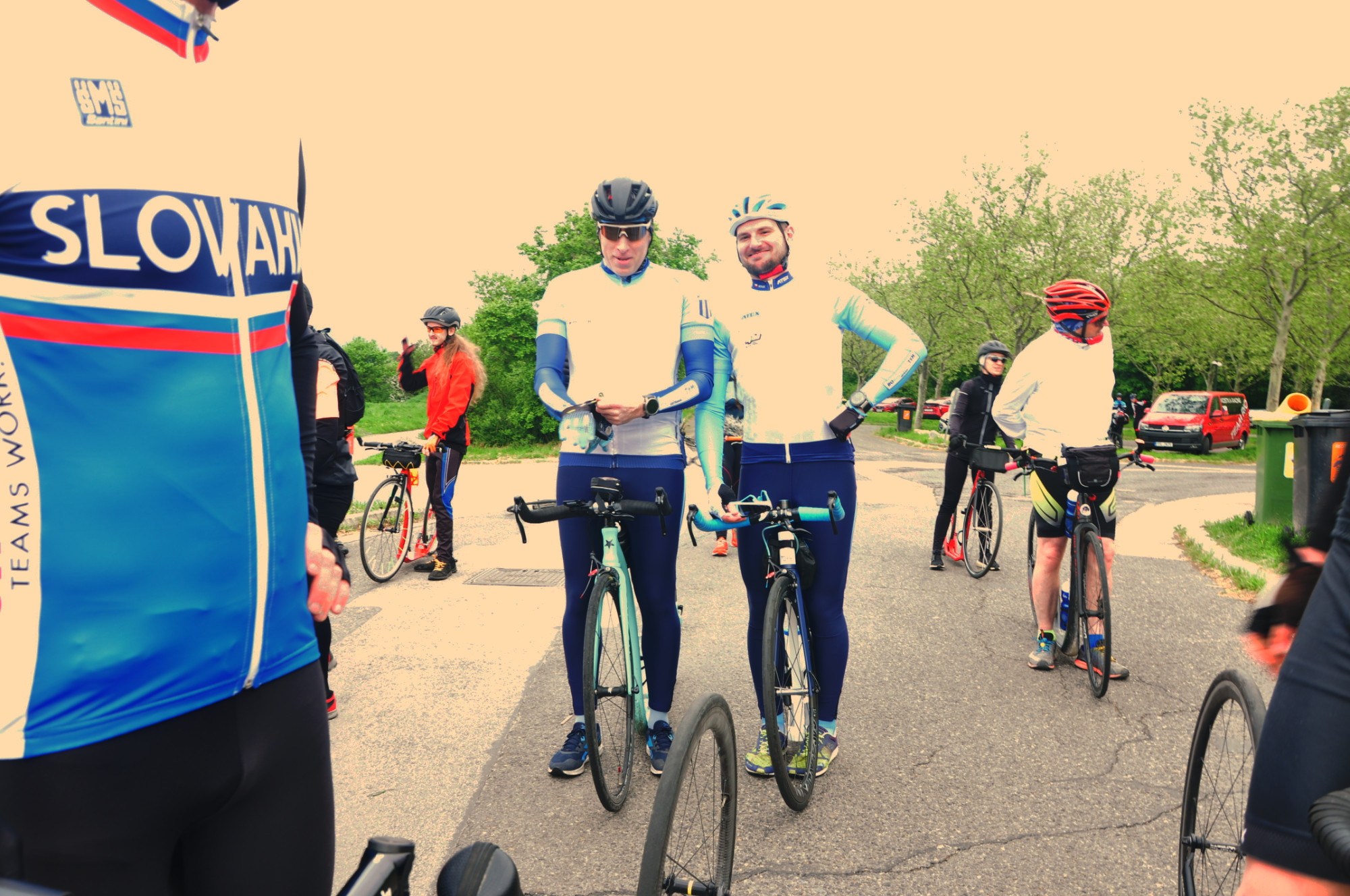 Treffpunkt war wieder der große Parkplatz auf der Donauinsel bei der Floridsdorfer Brücke. Die große Rollerfamilie traf sich und die Vorbereitungen bestanden hauptsächlich aus Tratschen. Pünktlich um 10:00 Uhr starteten 17 ambitionierte Sportler und 6 ambitionierte Sportlerinnen mit ihren Rollern und einer Begleitperson mit dem Fahrrad in Richtung Bratislava.