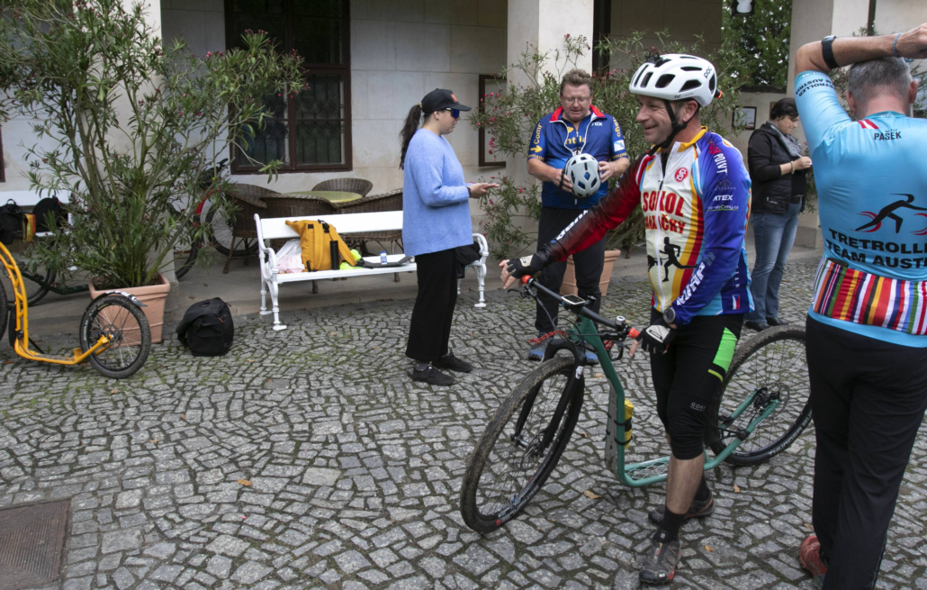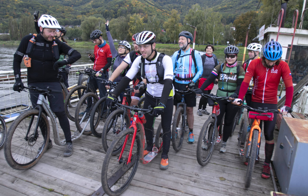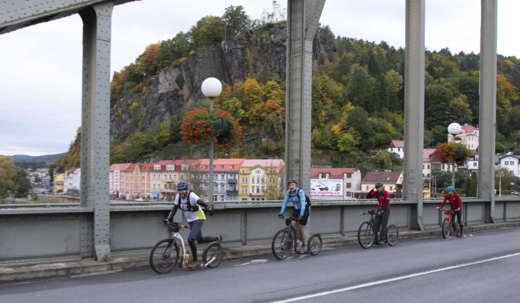 Der Start war als Novum für wahrscheinlich alle Sportarten weltweit konzipiert. Wir trafen uns auf einer Fähre am Südufer der Elbe. Sobald wir am Nordufer angelegt hatten, startete das Rennen. Alle waren motiviert, loszulegen, aber sehr herausfordernde Passagen sowohl von der Steigung als auch vom Untergrund machten das erste Drittel der Etappe zu einem Schneckenrennen. Es schien, als würde sich nichts bewegen, und selbst die Spitzengruppe erreichte eine Durchschnittsgeschwindigkeit von weit unter 10 km/h. Die Route führte durch Děčín über die Tyršov-Brücke über die Elbe und über die malerische Altstädter Brücke über den Fluss Ploučnice.