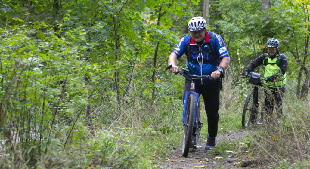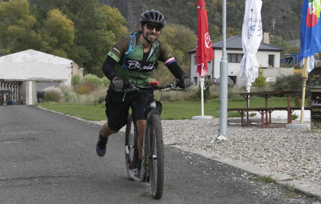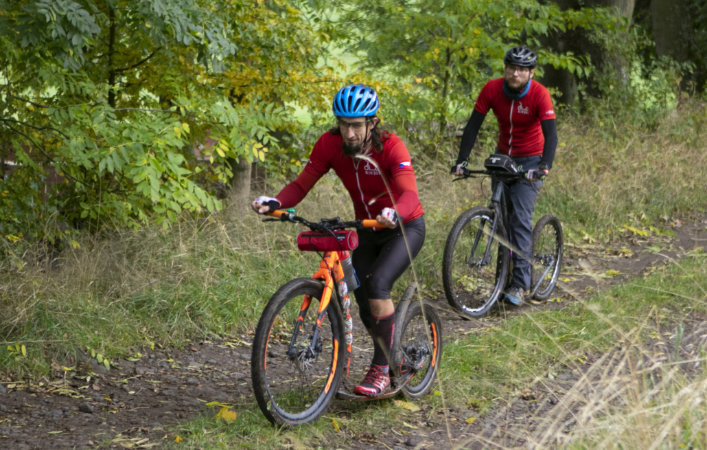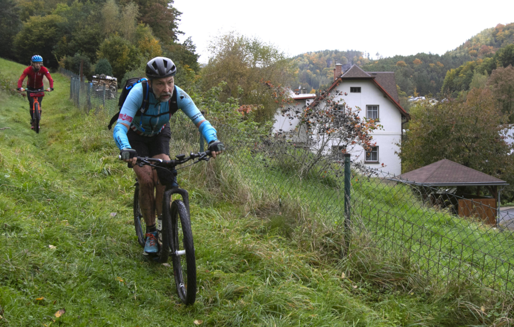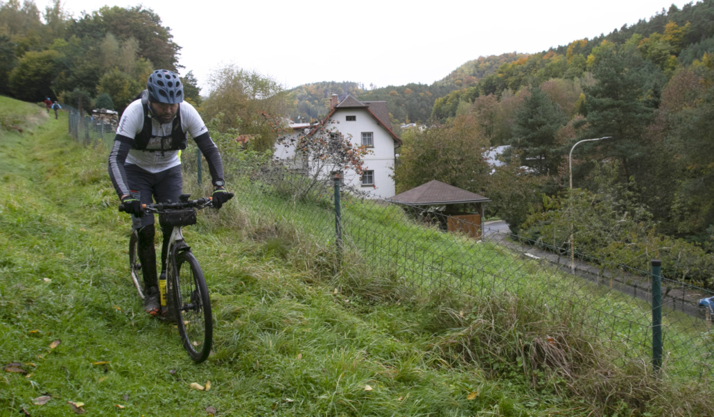 Die führende Gruppe blieb bis zur letzten Steigung zusammen. Dann griff Bolek Žemlik an und konnte sich einen gehörigen Vorsprung auf Ivo Jindra erarbeiten. Nach einer sehr anspruchsvollen und extrem steilen Abfahrt, die zum Glück etwas aufgetrocknet war, führte die Strecke noch über sieben Kilometer entlang der Elbe ins Basislager.