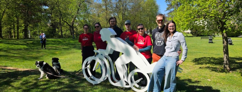 Meist strahlt die Metallskulptur in Weiß, doch Roman Šimon dekoriert die Installation anlassbezogen, beispielsweise zu Weihnachten oder zu wichtigen Aktionen des Tretrollersports wie dem grandiosen „Kick Spain 2025“.